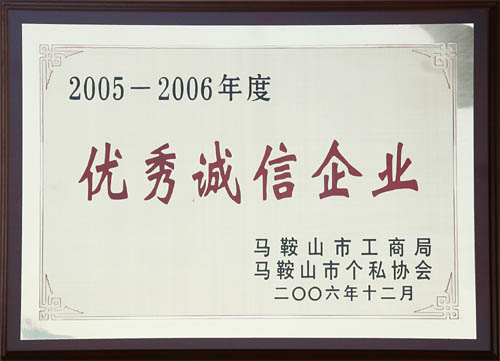我公司獲市工商局“05-06年度優(yōu)秀誠(chéng)信企業(yè)”稱(chēng)號(hào)