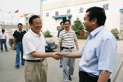 在鄭長玉董事長的陪同下,吳副書記等一行參觀了生產(chǎn)車間和成品車間并在公司會議室進行了座談。在了解了我公司的發(fā)展歷程、生產(chǎn)銷售、人才培養(yǎng)等情況后,吳副書記等人對公司近年來所取得的經(jīng)營成績給予充分肯定。他指出,工業(yè)是民族經(jīng)濟的支柱,尤其是機械設備工業(yè)是基礎中的基礎。在競爭日趨激烈的市場環(huán)境下,企業(yè)競爭力的提升關(guān)鍵要是靠人才的培養(yǎng),關(guān)鍵是要靠科技創(chuàng)新能力的提升和不斷完善的服務體系。同時吳副書記還指出,企業(yè)要發(fā)展必須實施“走出去”戰(zhàn)略,參與國際經(jīng)濟競爭與合作,努力開拓國際市場,提高國際市場占有率,在國際分工與合作中取得有利地位。