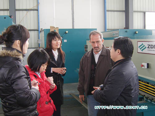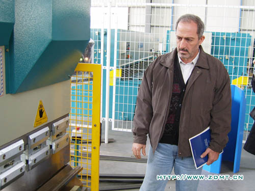 Haiyl A.AI Rawy先生對中國機械行業(yè)尤其是剪板機折彎機非常的熟悉,他表示他們非常重視機器的質(zhì)量,來中德也是由于中德機器在海內(nèi)外都享有良好的聲譽。參觀前,Haiyl A.AI Rawy還特意詢問我們在阿聯(lián)酋有沒有代理,當公司領(lǐng)導(dǎo)回答說目前還沒有時,他釋然一笑,表示希望能夠與中德建立良好的合作關(guān)系。在中德的成品車間,Haiyl A.AI Rawy先生聽取了我公司營狀況及近遠期規(guī)劃的介紹,并就每一款機床的詳細情況進行了介紹,重點詢問了其性能及售價等。他對我們的數(shù)控折彎機尤其感興趣,要求當場進行測試。Haiyl A.AI Rawy特意讓自己的助理拍下了整個操作過程,在我公司工程師的幫助下,Haiyl A.AI Rawy還進一步了解了折彎機數(shù)控系統(tǒng)的編程方面的問題。