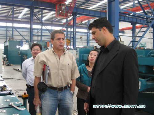 稍事休息,Atila Deniz先生和Mr.Tunc便帶著迫切的心情參觀了中德的各個車間。從裝備車間到大件車間,至電焊車間再到金工車間??腿藢χ械庐a品表現出濃厚的興趣,提出的問題也是相當專業、細致。比如,機床使用材料的鋼號,數控系統的工作效率等等,無不體現出一個機床消費成熟國的高標準。
