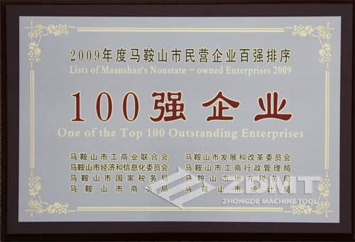 中德機(jī)床榮獲“2009年度馬鞍山民營(yíng)企業(yè)雙百強(qiáng)”稱號(hào)