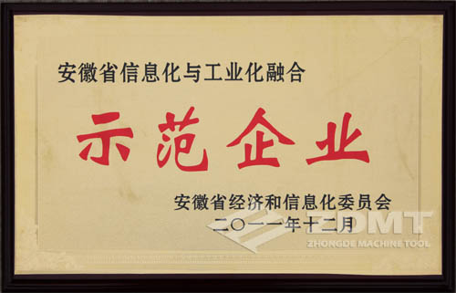 中德機床獲安徽省“信息化與工業化融合示范企業”稱號